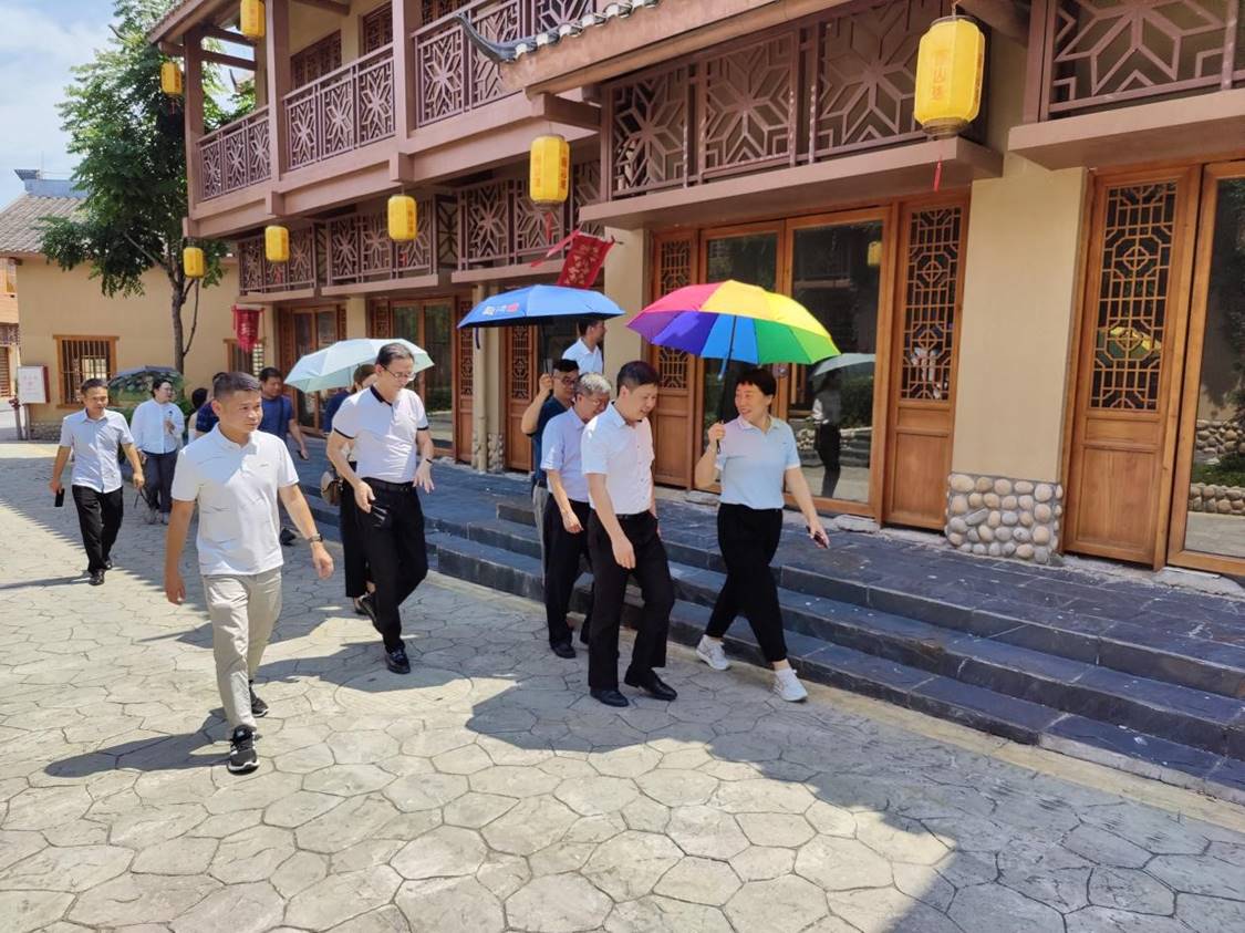 调研团队一行受到源之都常务副总经理杨志远的热情接待。杨志远向调研团队介绍了源之都的基本情况,源之都坐落于乳源瑶族自治县,具有发展旅游、休闲、养老、种植等行业的地理环境优势,其中云门山生态文化旅游区是国家4A级旅游景区,区内面积 5 平方公里,依托云门山得天独厚的自然风景资源,突出体现“过山瑶民俗风情文化”的特色主题。在杨志远的带领下,调研团队一行参观了景区商业街。